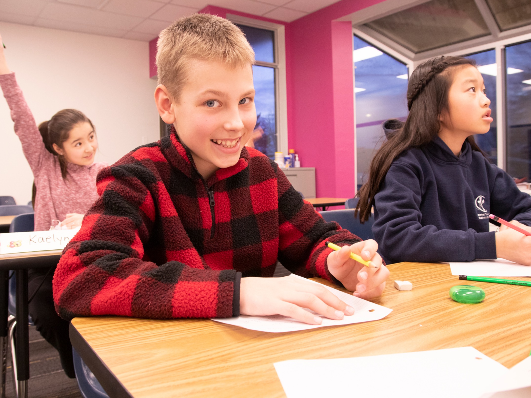 The Grade 8 curriculum covers radicals, exponents, linear relations, solving and graphing equations and inequalities, and more. These topics are covered in depth with many of the ideas usually not seen again until later in high school for most students. The extension to deeper thinking within each topic allows students to explore ideas in mathematics not often discussed in a regular classroom. In addition to the core topics, independent assignments (known as Jet Sets) have challenging, contest-level math problems. Cooperative group work, like all other grades, is a key component in the curriculum for this grade. All grade 8 students write a final examination at the end of the school year. The overall Grade 8 curriculum is designed for high performing students and the weekly 1.5-hour classes are fast-paced.